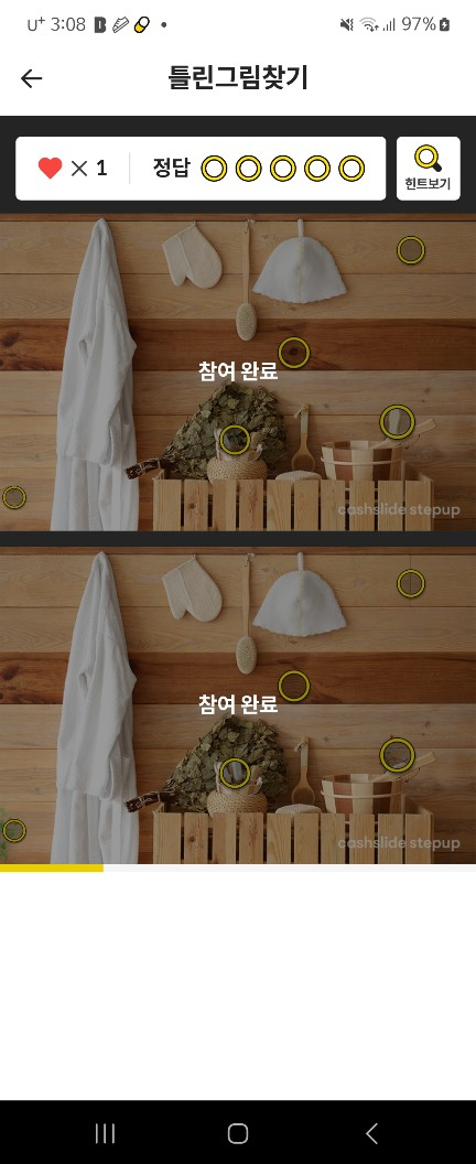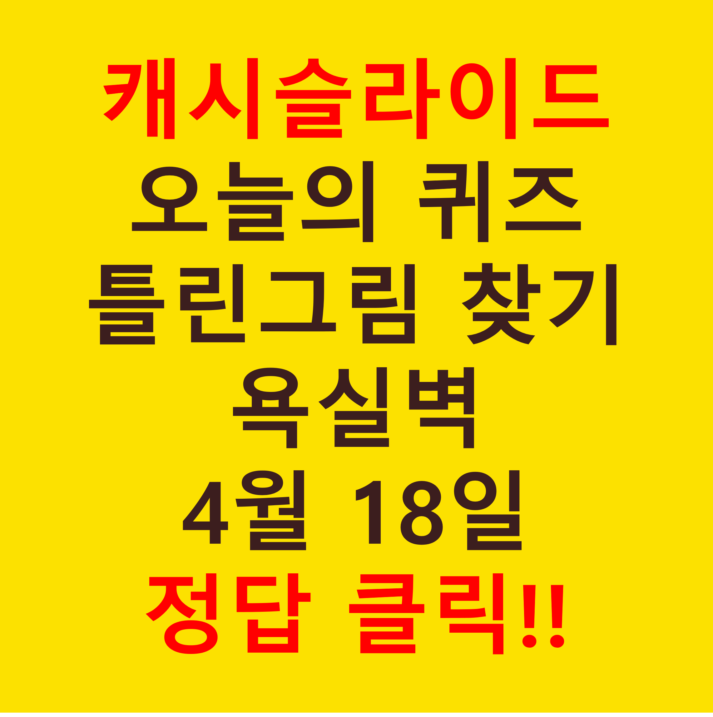 캐시슬라이드 오늘의 퀴즈 틀린그림 찾기 욕조벽 문제 및 정답! 2025년 4월 18일 정답은 이 글을 아래의 글...